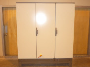 Sarel Spacial 6000 range - RAL7032, Control Suite consisting of; 1800 x 1200 x 500 (67585) double door enclosure, 1800 x 600 x 500 (67565) single door enclosure, plinth for each panel (69125 + 69065), Sarel connection kit, Sarel sides. All mounted on a custom built, removable base with pallet truck slots. Includes Legrand 250A main isolator.